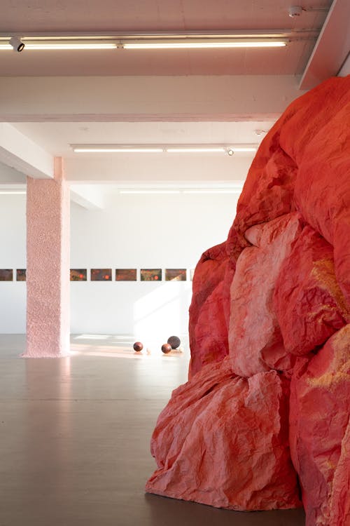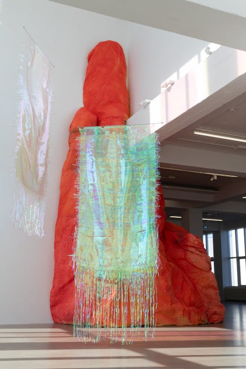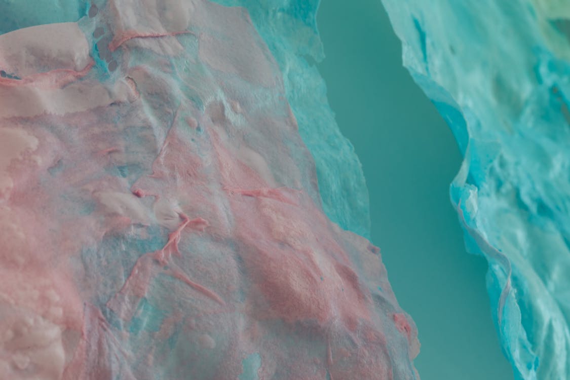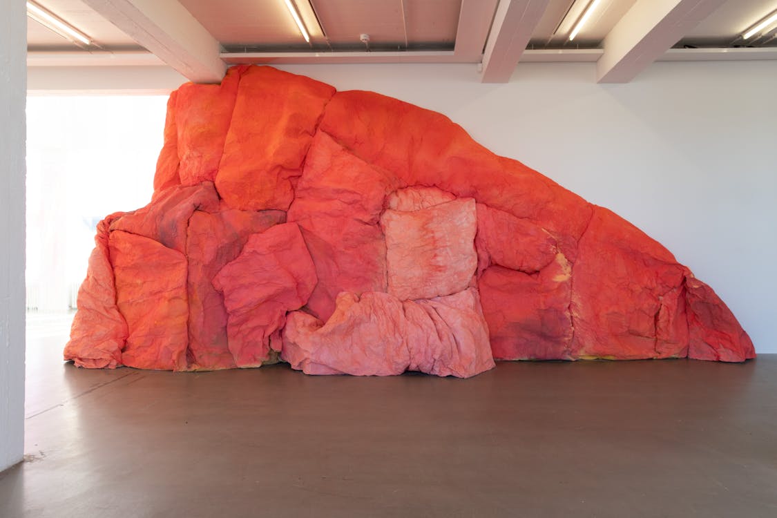 The invitation to exhibit came at the perfect time. I was on my way to the studio, nearly at the point of packing up and taking a break from art, or at least changing my relationship to it. But then I got a phone call with the invitation from The Living Art Museum (Nýlistasafnið). I had a year and a half to prepare the exhibition. At the time I was quite busy taking care of my home and family, with three young children – two in school, waiting for a preschool place for the third – and teaching as well. The idea for the exhibition simmered for a long time, but there at the beginning I felt quite stuck, confined by work and home life, bombarded with stimuli. I used daydreams to get through that period. I daydream a lot and that state can take me to different places – it can be a landscape, a feeling, a texture, a color, or something mysterious and vague. I let my mind wander, go on a deep journey while I take care of housework and just daily life. But those daydreams back in 2022 became the trigger for the exhibition: I wanted to convey this state of being and to materialize daydreams.