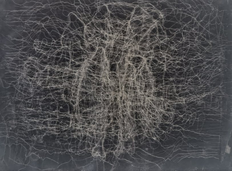Skriða consists of audio work and an installation in the innermost space at the Living Art Museum. The work is based on data from the Meteorological Office about the geological transformation that occurred in December 2020 when a landslide fell from the mountain above the town of Seydisfjordur, pushing buildings out into the sea. This event had a huge impact on the community and a permanent impact on the town’s appearance. This is one of the biggest landslides to fall in Iceland. The installation includes rocks that Gunnhildur retrieved from the wound which the landslide left in the mountain. The rocks hang suspended in the air in satin ribbons, forming pendulums, surrounded by a recording of a composition, based on Gunnhildur‘s drawings, played by Borgar Magnason double bass player. The drawings are created with a view of the earth’s imagined sense of time and from the reports of geologists at the Meteorological Office. Thus, the audio synthesis of geological transformation has its roots in musings on different senses of time; on one hand man’s perception of the flow of time and, on the other, the imaginary sense of time of the earth and earth beings; mountains, water and rocks.