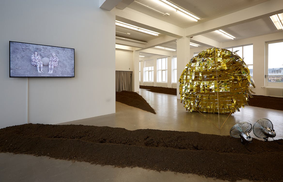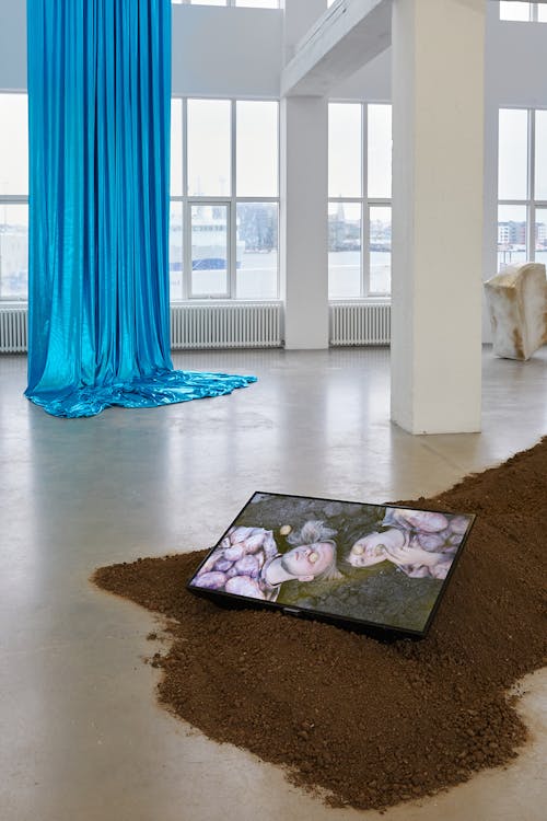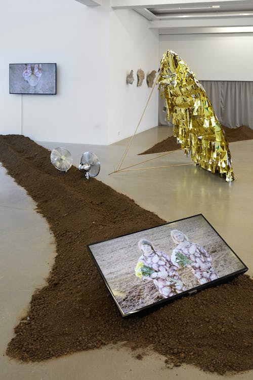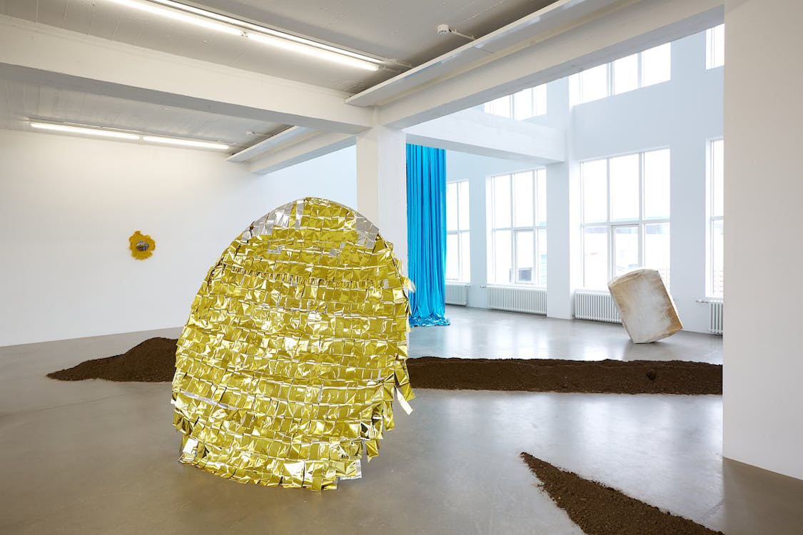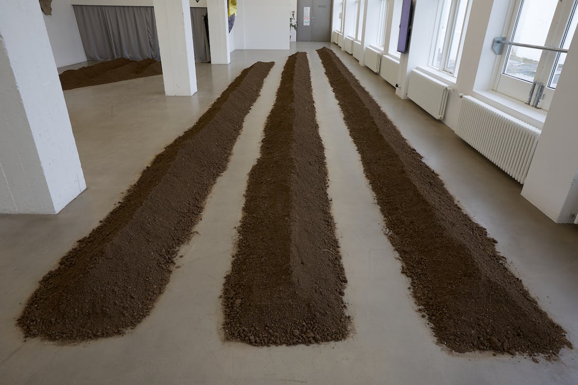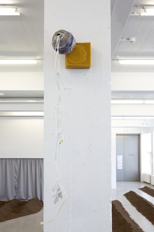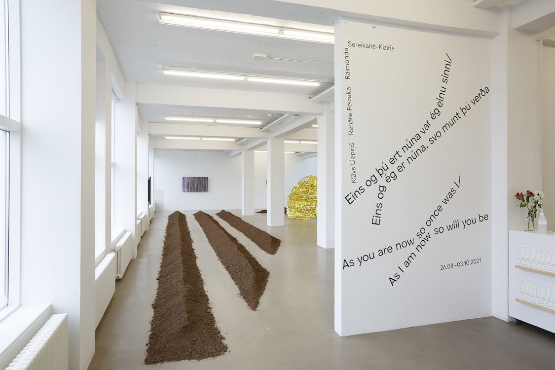 The participating artists Klāvs Liepiņš, Raimonda Sereikaitė-Kiziria and Renāte Feizaka, are all based and work in Iceland. Their works derive from an apparently different viewpoint yet they enchantedly meet in this exhibition in the realm of elemental human uncertainties. Raimonda´s large-scale, self-content sculptures with their vivid colours and stimulating textures are in consistency to the artist's fascination in altering the physical form of her pieces. The artist duo Klāvs Liepiņš and Renāte Feizaka use their Nature-Human theme as a starting point where political, cultural and existential hypotheses derive from. Their soil installation serves as a symbol of the fabrication and absurdity of nationalism : the concepts of heritage and belonging : as well as a representation of the cycle of life.