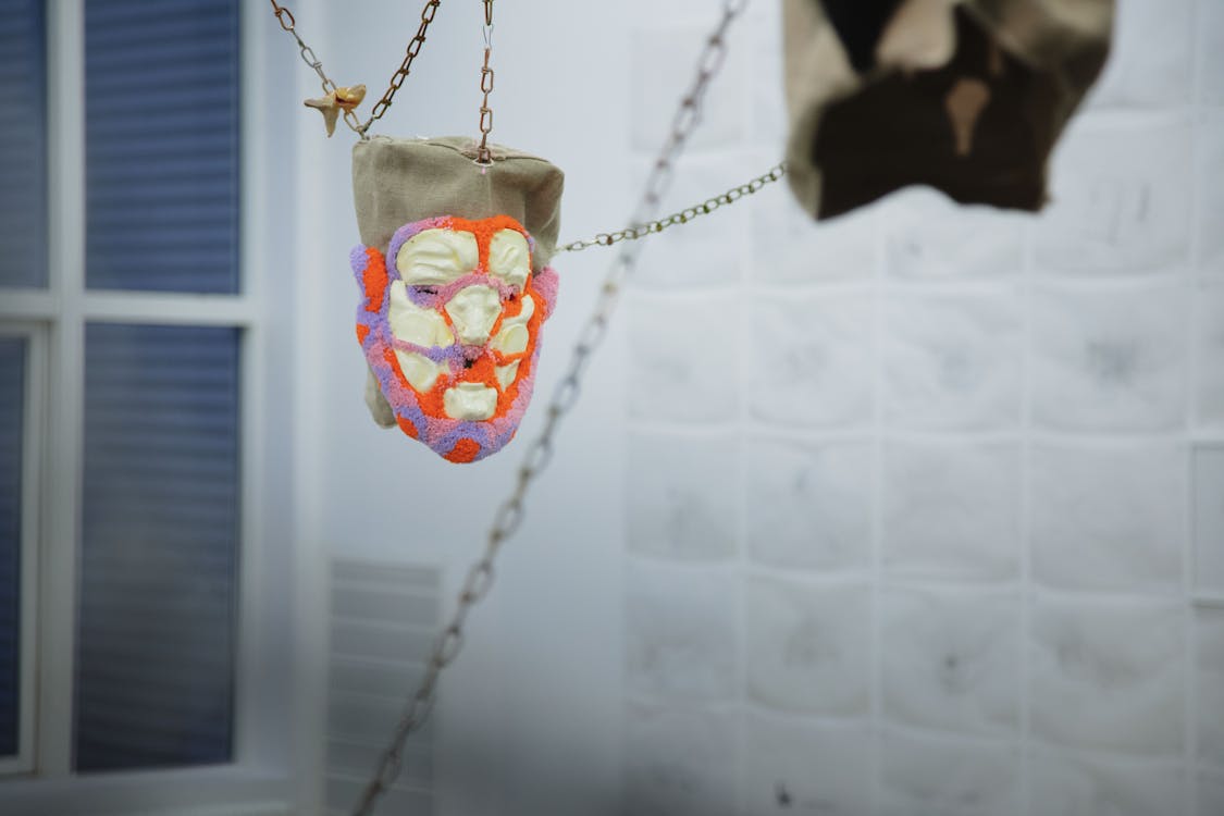 Michael Nosek (*1990, Czech Republic) was born in Litoměřice, lives and works in Prague. He graduated from the Academy of Fine Arts in Prague, where he studied at the Painting Studio III. Michael Rittstein. Physicality and emotionality repeatedly appear in the range of topics the author works with. A corporeality that is portrayed either directly and explicitly or one that carries a work that exists and resonates in combination with the body. Emotionality, facial expression, facial expressions, expression – such contents then describe the masks that the author creates, whether intended as a separate object or in connection with the body and in the installation.