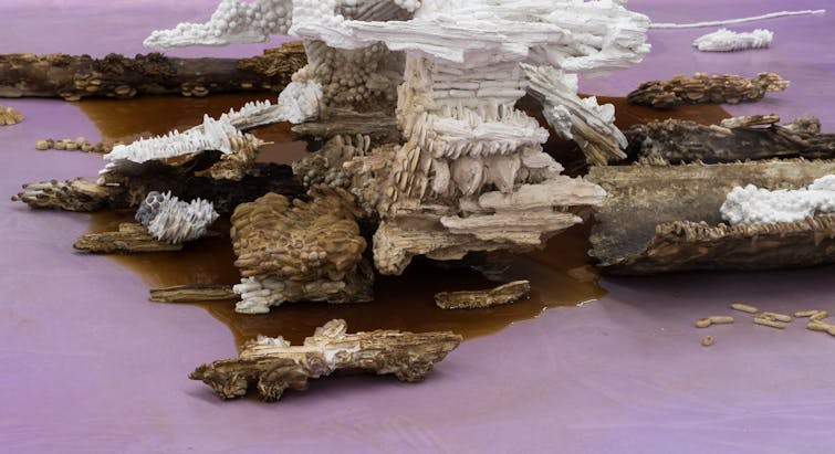 Get ekki séð sprettur úr myrkri sem umlykur. Sýningin fæddist út frá þeirri tilfinningu að heimurinn sé að molna í höndum okkar, á meðan hvassviðrið þyrlar síðustu dropunum af dreggjum hans enn lengra. Við sjáum ekki sívaxandi ógn vistfræðilegrar eyðileggingar, rétt eins og við sjáum ekki mögulegar nýjar leiðir og líf sem gæti kviknað úr rústum gamla heimsins.