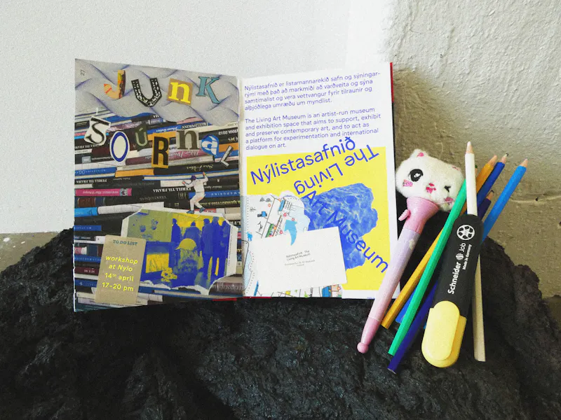 Nýlistasafnið býður þig velkominn á opna dagbókar- og klippimyndasmiðju þann 14. apríl kl. 17:00 til 20:00. Smiðjunni er stýrt af Sofiu Ragkavi, starfsnema okkar frá Grikklandi! Saman munum við njóta huggulegrar stundar þar sem við lærum að búa til klippimynda dagbókarfærslu frá grunni, ræða saman um innblástu, fræðast um Nýló og hlusta á tónlist!